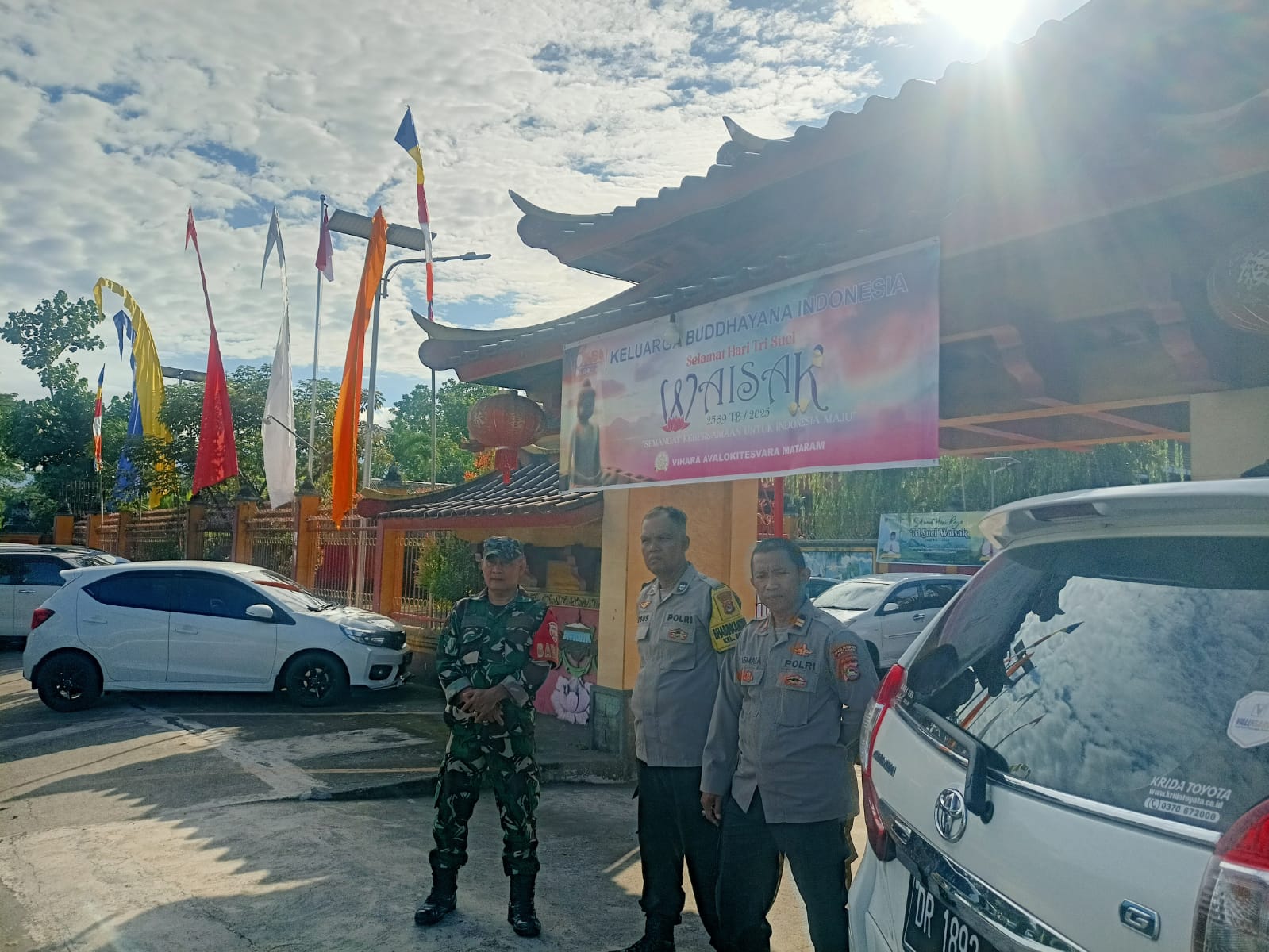 Mataram, NTB – Dalam memastikan keamanan dan kelancaran perayaan Hari Raya Waisak 2569 BE/2025, jajaran TNI-Polri bersinergi melakukan pengamanan di sejumlah titik penting, termasuk di Vihara Avalokitestvara wilayah Komando Rayon Militer (Koramil) 1606-01/Cakranegara, Jalan A. Yani No. 09, Lingkungan Butun Indah, Kelurahan Bertais, Kecamatan Sandubaya, Kota Mataram, Nusa Tenggara Barat, Senin (12/5/2025).