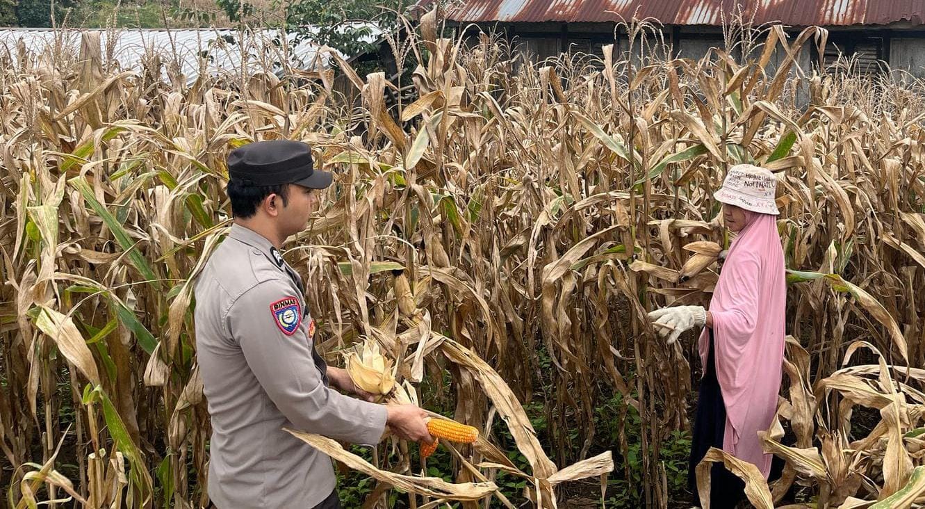 Wujudkan Indonesia Yang Swasembada Pangan, Bhabinkamtibmas Polsek Donggo Terjun Bantu Warga Panen Jagung